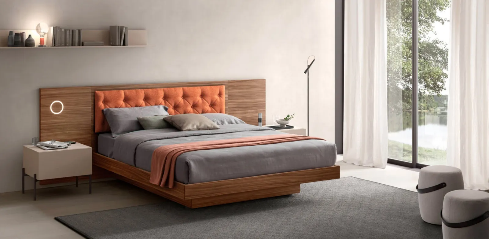 Durante la scelta di un buon modello di letto, valuta con attenzione le sue dimensioni, le finiture, la forma e il suo stile rispetto al resto degli arredi. I Letti matrimoniali con testiera del brand, leader nella realizzazione di Arredamento Casa per la zona del riposo, sono pensati per essere abbinati a mobili ed elementi accessori di ogni tipo, come armadi e comò, lampade e piantane. Scegli tonalità e finiture e realizza il tuo concept d’arredo nella camera, progettandola proprio come l'avevi sognata. Se desideri una soluzione in melaminico, il modello visibile in foto è contraddistinto da materiali pregiati e forme decise, che invitano a trascorrere un sonno sereno e rigenerante.