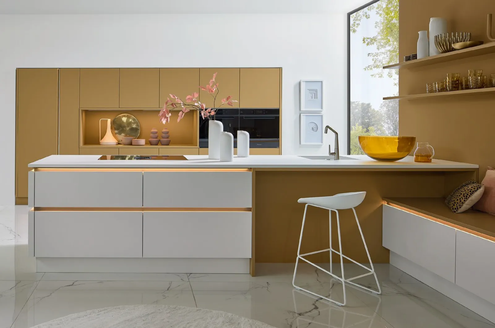 Tieni presente che la zona cucina è uno spazio soggetto ai danni di vapore acqueo e calore: la proposta in foto, come tutte le Cucine Moderne sul mercato, richiede una corretta manutenzione. Questa proposta con penisola di alto valore estetico, firmata dal noto e conosciuto brand, è uno dei modelli più esclusivi e potrai richiederla in più finiture. Nel nostro showroom ti aspetta un ricco catalogo di Cucine Moderne Nolte di alto valore estetico, in vari colori e finiture attuali e di diverse conformazioni. La scelta della nuova cucina dipenderà dalla conformazione della stanza, dal suo stile e dalle tue necessità di spazio, praticità e contenitività.